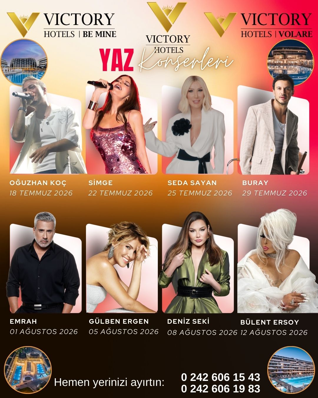 The rhythm of entertainment is rising at Victory Hotels this season. We are thrilled to announce that Victory Be Mine and Victory Volare will be hosting spectacular live performances all summer long.